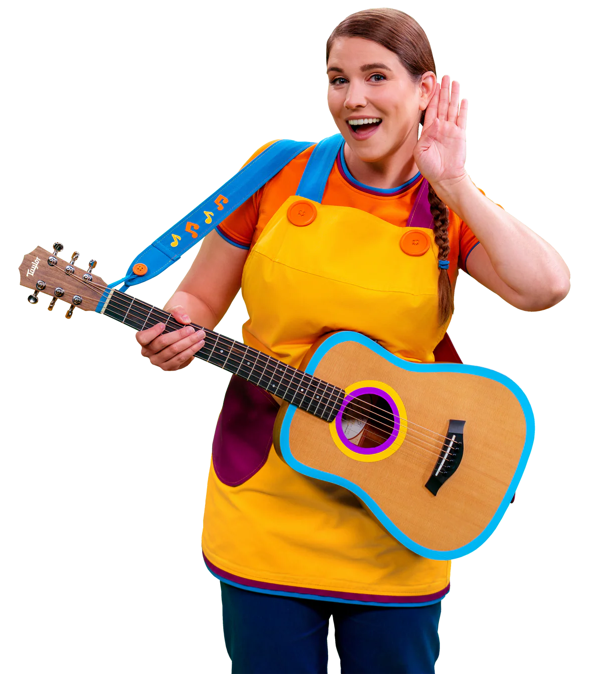 Caitie's Classroom apron from Super Simple! It’s perfect for little ones and grown-ups who love Caitie's Classroom and Super Simple Songs! Put it on when you do arts and crafts, baking, or imaginative play.